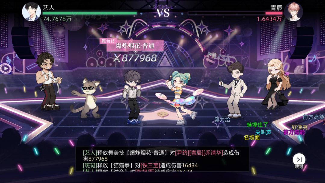 所有战斗将取消加载场景的Loading界面,直接进入表演。表演界面上方左侧将显示我方精力值之和,右侧显示对方精力值之和。【跳过】按钮移至界面右下角,舞台效果将根据配置顺序自动释放。