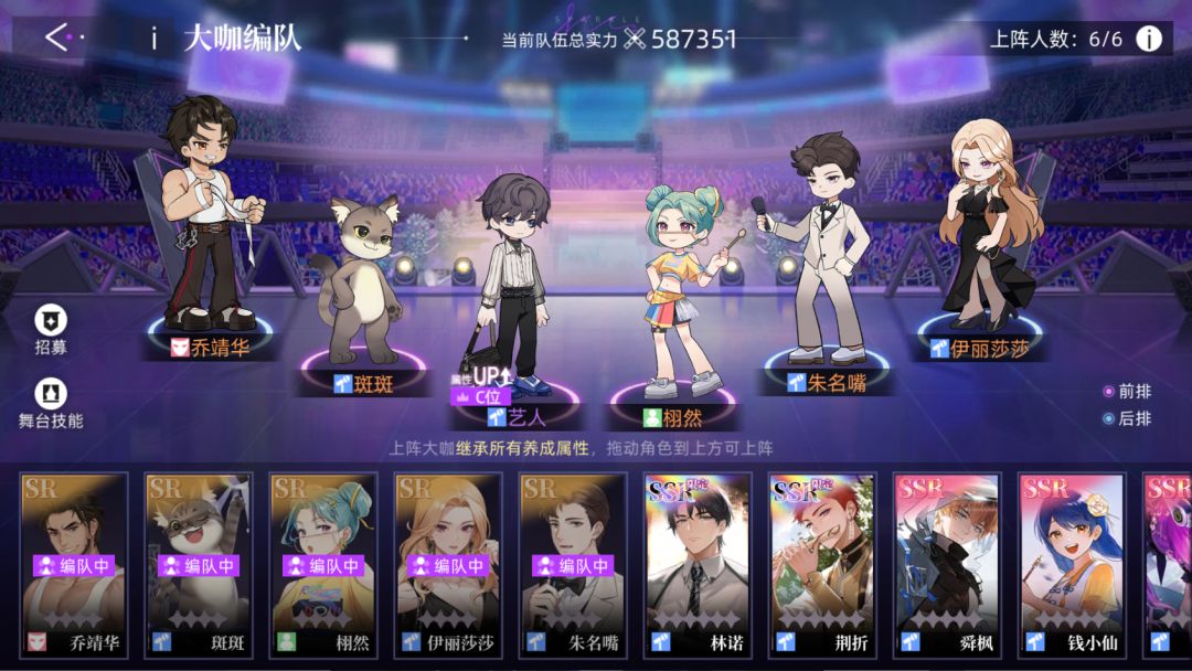 上阵角色改为从下方角色列表拖动角色至对应站位处,即可上阵对应大咖。艺人可以直接拖动Q版形象调整站位~