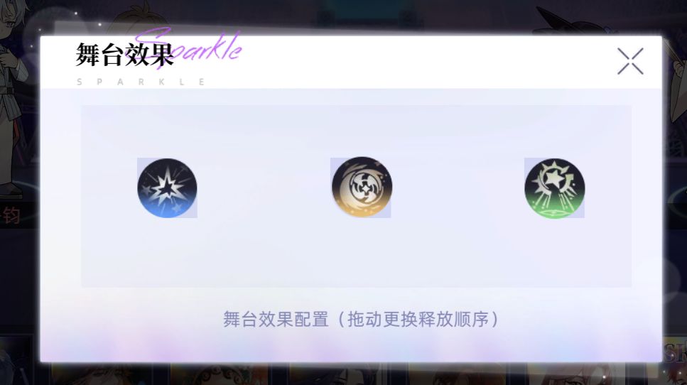 【舞台效果】更改为按键设置在界面左侧,点击后即可更换施放顺序。