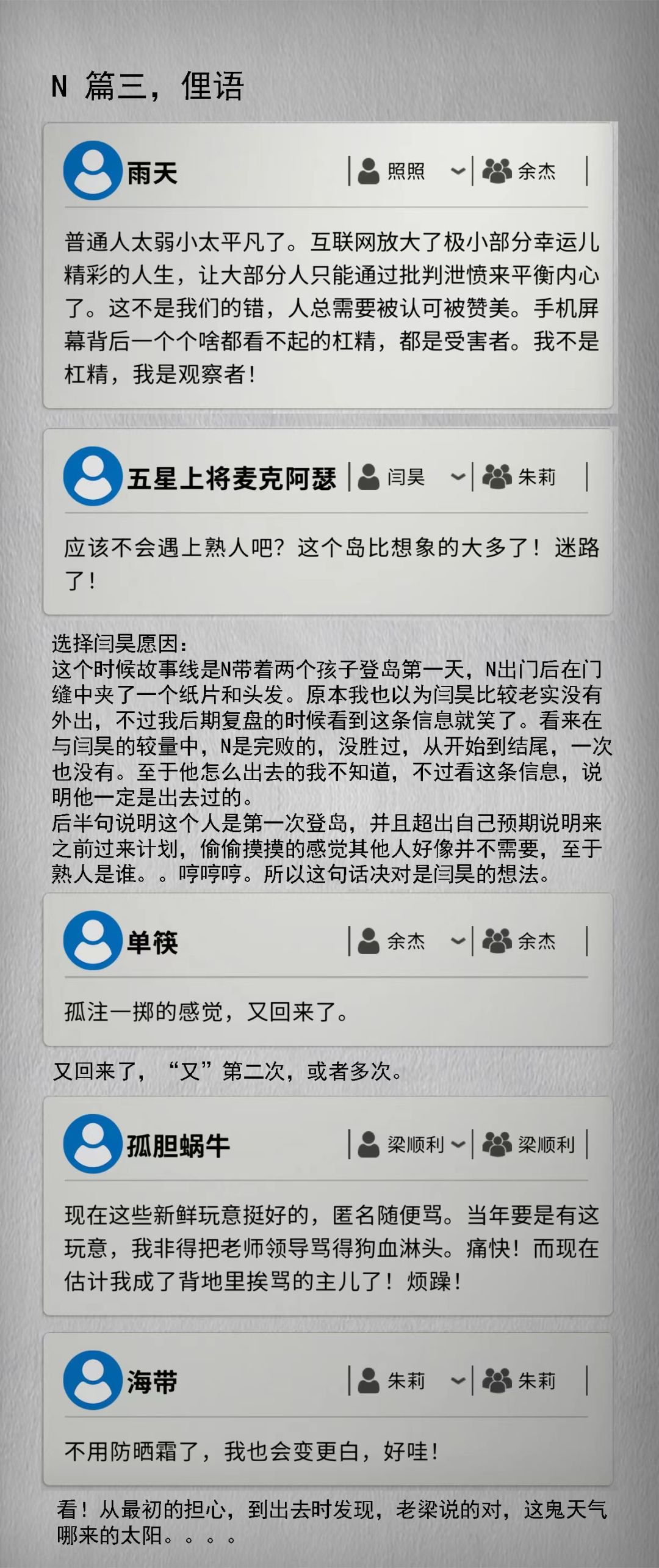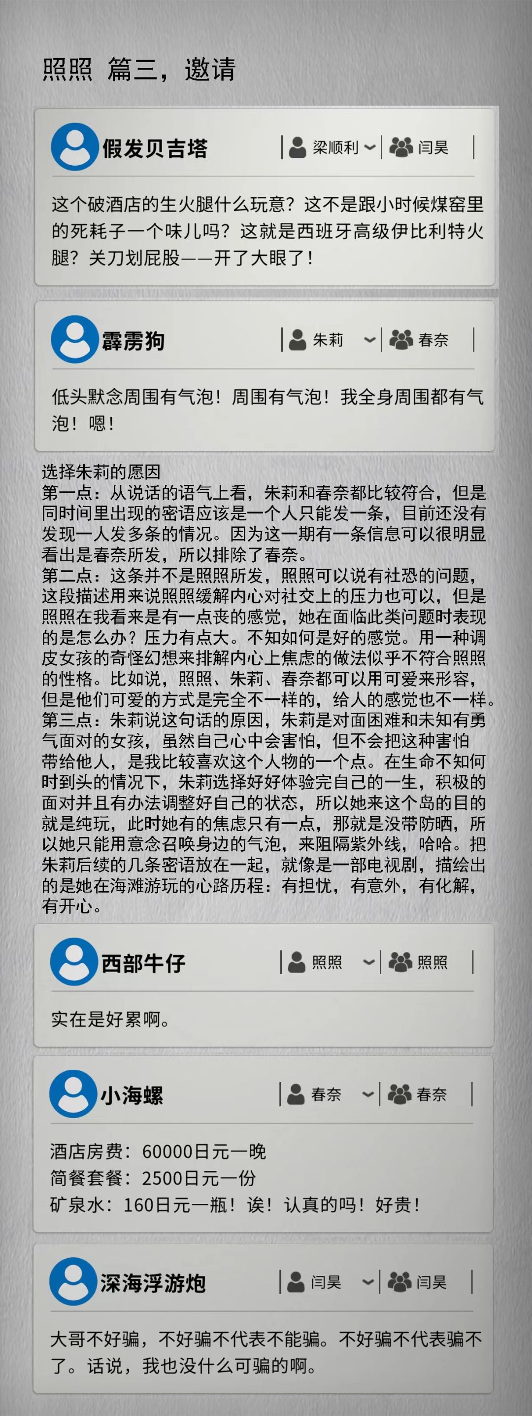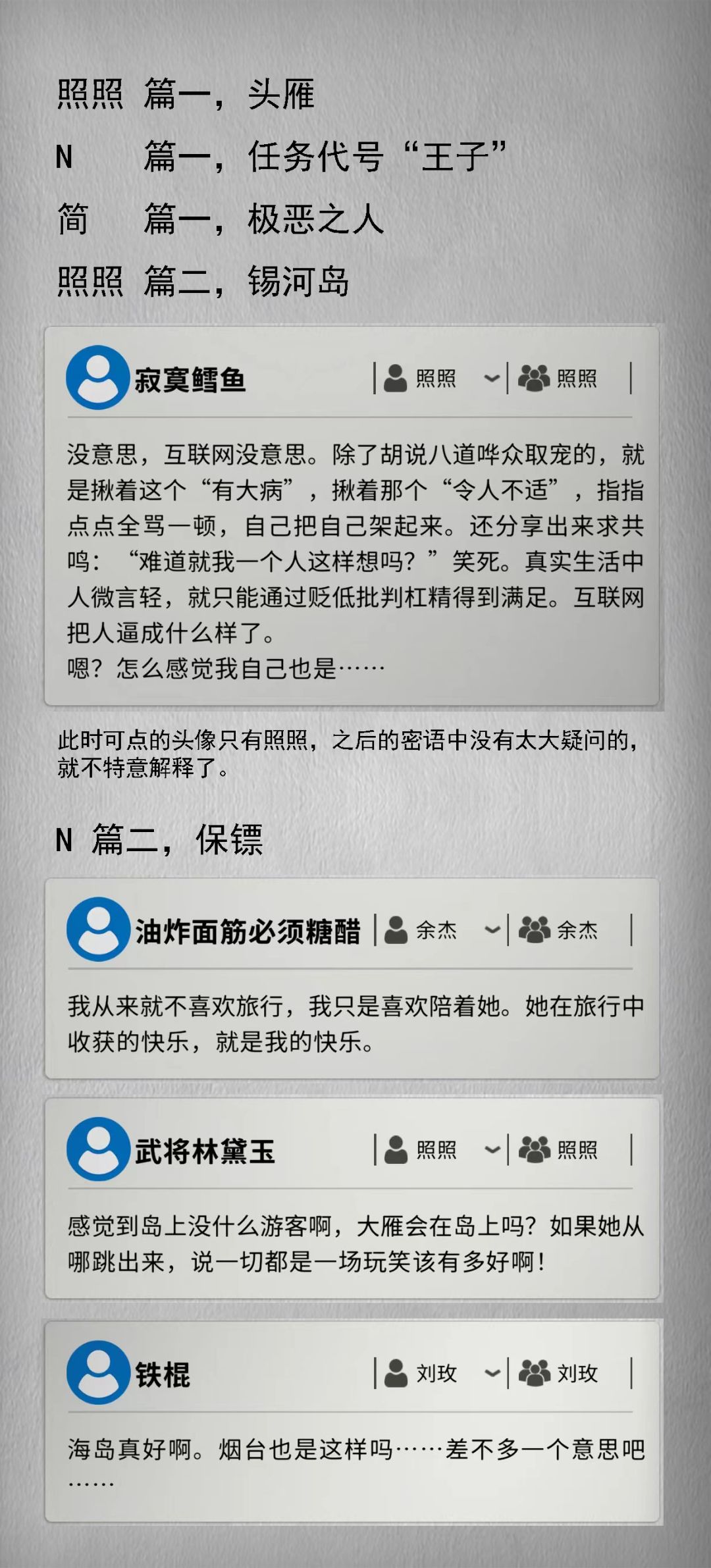 原本我对树洞不太关注的,但是在推理剧情中发现树洞中的信息十分的关键。所以把它单独做出一个系列出来。