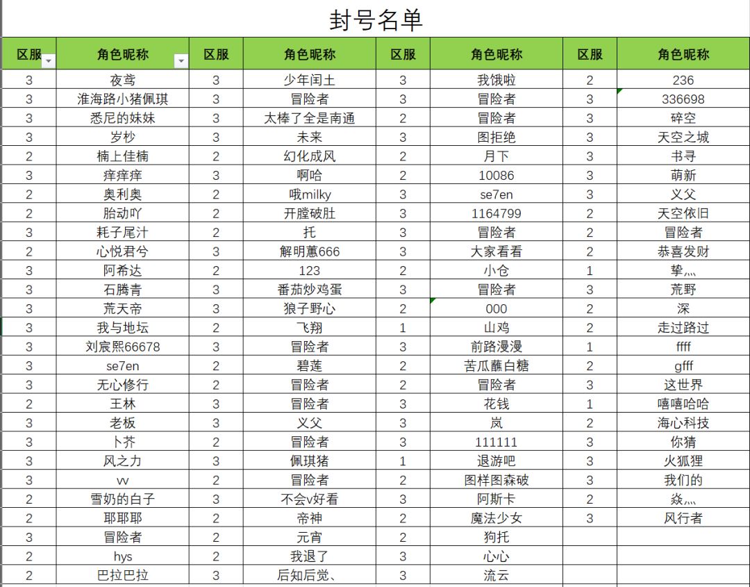 作弊系统已经升级完毕,因作弊而被永久封禁的相关账号公示如下: