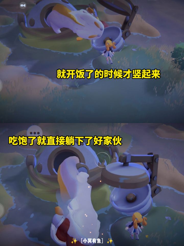 ✨还有那个指引我们干活的那个大家伙。设计得就很有趣。吃完饭就躺下了,就舔一下直接摆烂。像极了2024年的年轻人。等到开了第一个地图它终于立起来了。还有非常多的小地图可以去探索。