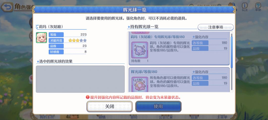 用法:使用后持续生效,在到达标示的专武等级之前,不需要消耗心碎、角色碎片、mana