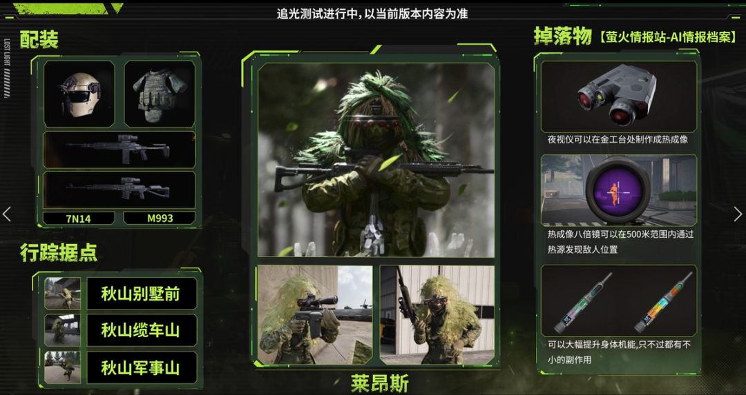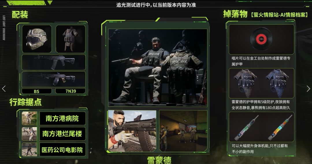 针对特殊AI群体我们需要格外注意。猞猁特遣队装备美系武器及4~6级弹,常在秋山的别墅、度假村以及防空洞区域,南风港的烂尾楼、病院宿舍楼区域,医药公司主楼,以及海都主楼二、三层以及侧面停车场区域这些高资源点活动频繁,需要大家加以观察。而在进行多人排位时,猞猁特遣队不仅会出现在上述已知的活动区域,还会出现在南风港的烧毁仓库中,请多加小心!