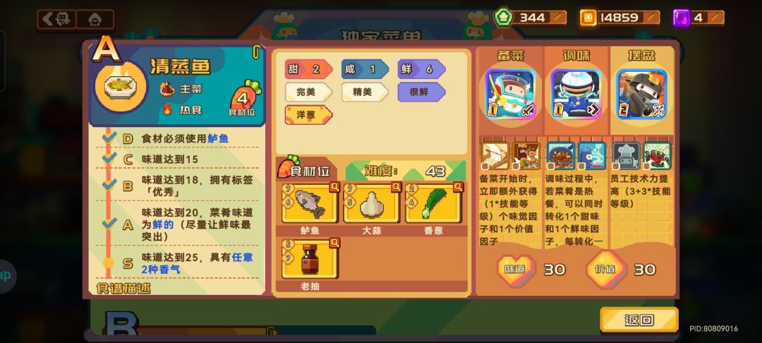 新手玩这个模式勒!要注意食堂升星条件!在经营左下方!做菜的时候要看看它所需要的要求!然后添加相应的食材。不过这样一般也只能做到B级菜品。想要A级菜品或以上,需要给对应条件的角色升级和~一些彩色级食品(一般刷出来有点难),升到5级会有第二技能!萌新们记得看好技能作用。