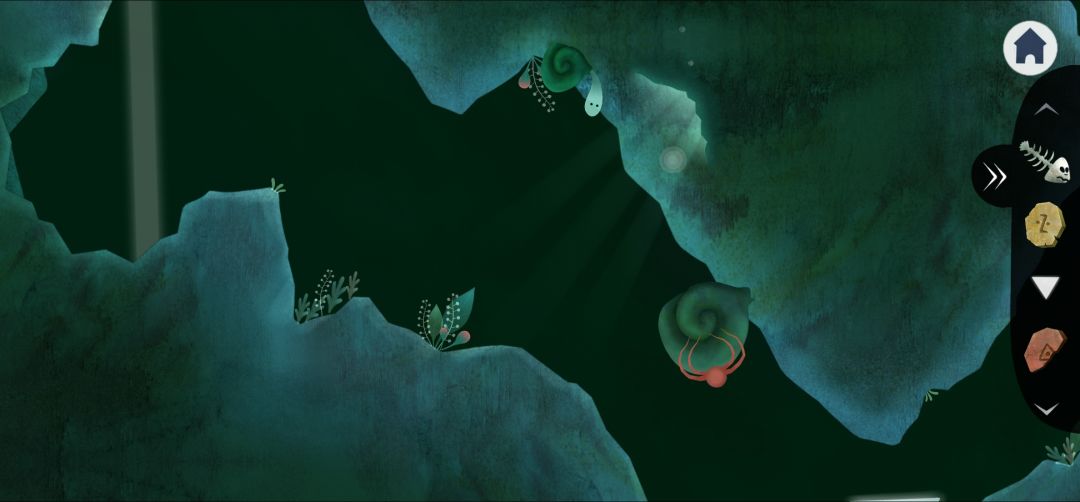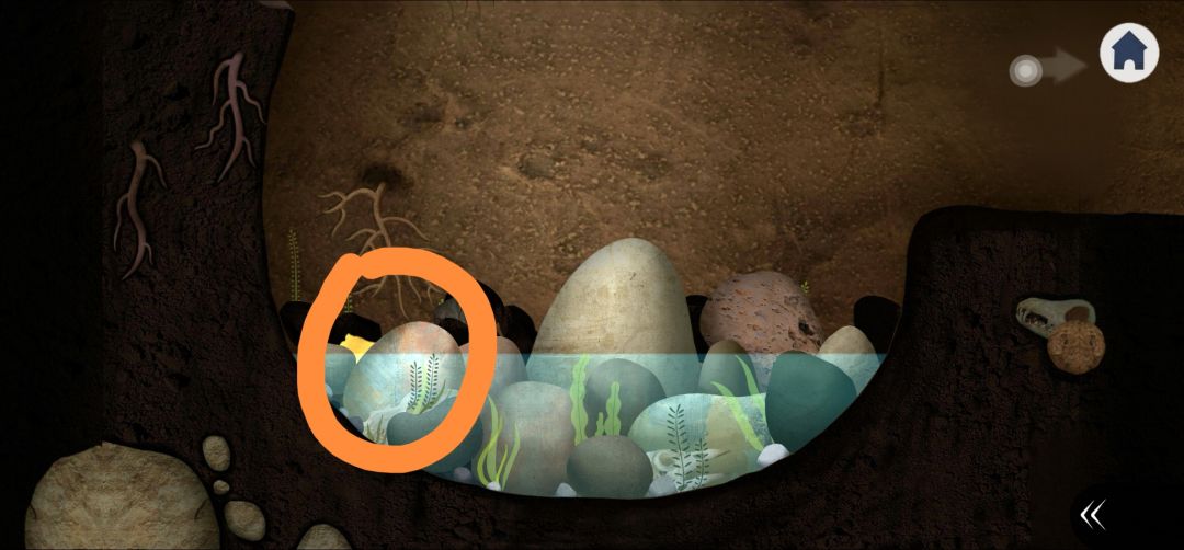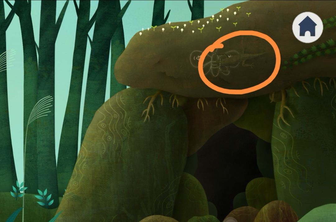12.退出,右划点击山洞上的壁虎直到掉进水里(4.15),然后左划,可以看到壁虎爬到了右下角的石头上(4.16),不断点击直到拾取壁虎