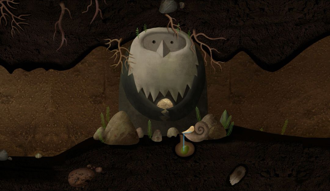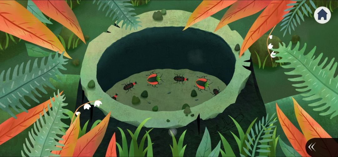 2.右划,和猫头鹰对话,得知它需要闪亮的东西。进入树干,点击左下角的甲壳虫得到信息(3.2)
