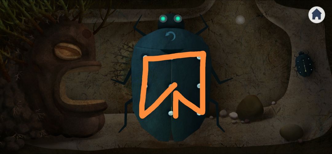 14.下滑进入地下室,点击右侧甲壳虫,按照叶子上的图案一笔画解锁(3.16),得到碎片6