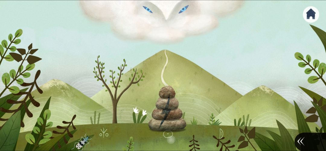 2.右划,点击树上的幽灵和树洞,把四个幽灵都唤醒合成石块碎片1(我乱点的,顺序好像是这样4.1)