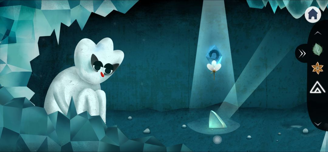 13.退出城堡,点击守护神触发对话得到三角形冰块,左划进入祭台把冰块都摆上