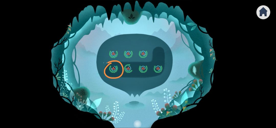3.注意石头花纹(1.2),进入最左侧花树,按照花纹顺序点出对应数量的花球(1.3)