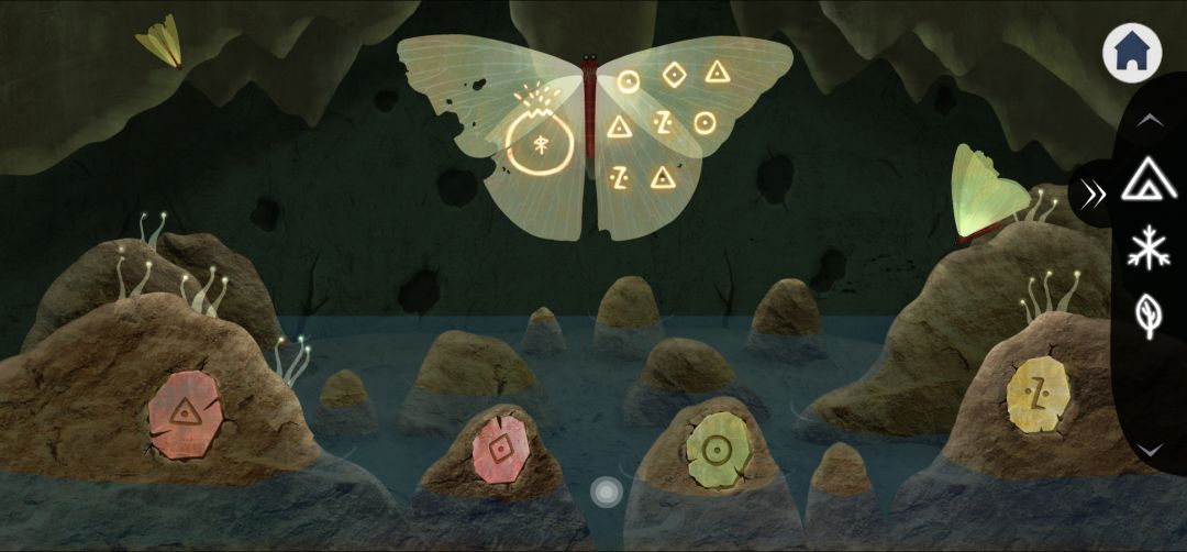 14.退出右划,进入蝴蝶山洞,按照猫头鹰给出的信息排列石块,记住蝴蝶翅膀上的信息(4.17)