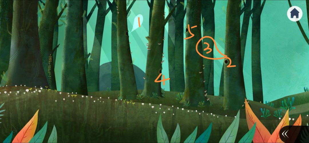 1.注意树上的组合图案(1.1),点击长角的雄鹿白影,只能点击雄鹿,点击雌鹿次数会重置