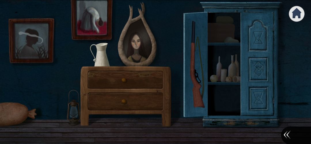 7.把点击小蓝鸟获取钥匙,进屋打开蓝色衣柜拿到猎枪(5.6)
