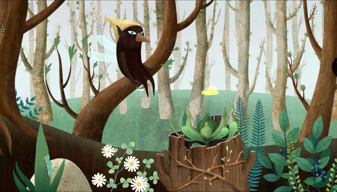 5.点击爸爸,触发小鸟对话,“跟着雄鹿走”