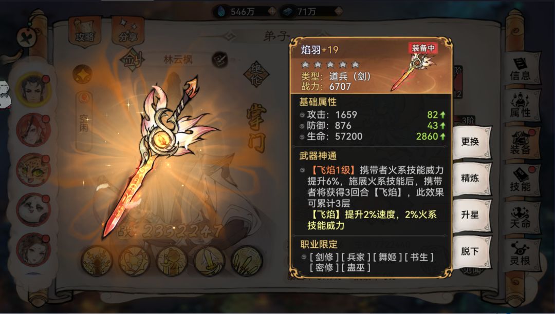 算上开服人手一把的火系焰羽,至此五行属性的道兵剑齐了(看的我强迫症收集癖都犯了)虽然道兵剑的立绘很不错,不过还是建议大家理性消费,道兵剑优先级我做了个排序——火剑(已经拥有)>水剑>金剑>土剑>木剑。如果普通玩家建议白嫖一把水剑就好了,氪佬请无视。