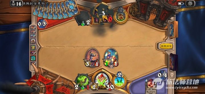 我先说我在实际情况中打出的错误打法,我的打法是第二张蝎子打在跟班上潜行,转刀打脸,虽然最后拿下了比赛,但是当时我总觉得好像哪里有问题,于是截图之后复盘思考时发现了这种打法的巨大问题: