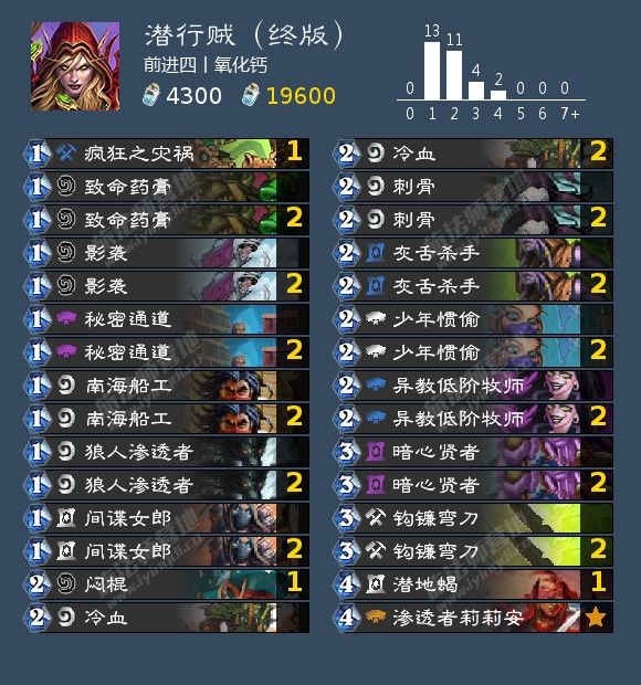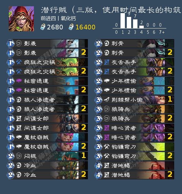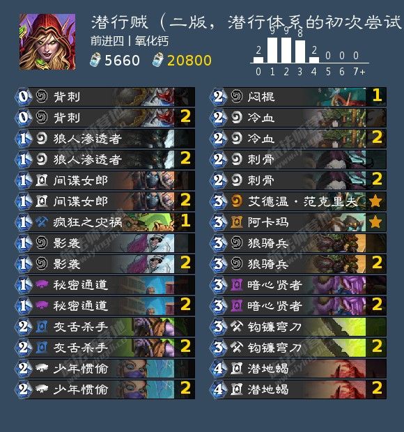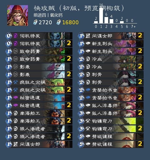 大家好,这里是前进四丨氧化钙。(现战网名:AFLuckyCaO)。早在版本初期的预览期,笔者就在尝试构筑“T2贼”(卡组中最高费仅为二费),然而经过上线后的测试发现这种构筑由于质量过低,虽然够极致,但由于速度过快可能自己就先散架了。在之后经历了三次大改接近300场的测试之后,终于构筑出了现在这套自认为还算是完美的潜行贼,并在上个月中从3000分段一路冲到200,在这个月初也是达成了约四小时传说并挤进前百(这两天玩别的卡组脸黑已经飞了)。在这个月冲c过程中,体感潜行体系的热度逐渐提升,但遗憾的是尚未看到一篇谈及具体打法的攻略,故此尝试去写这样一篇文章来简述此卡组如何在有限的回合数里更有效率的去抢血。