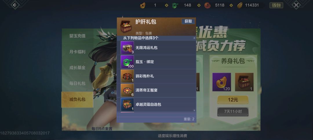 每周开启获得 120婴玉 以及篆星灵石和化育丹二选一,建议选篆星灵石,贵且消耗较大