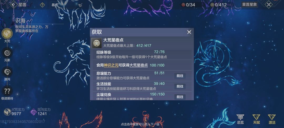 比如血脉,星宿点,装备,武器,词条