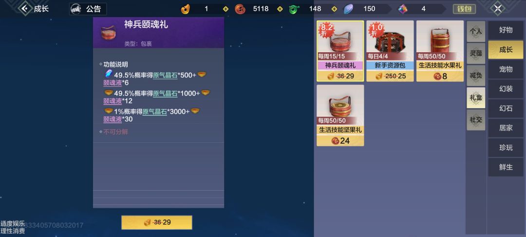 懒得肝生活等级,缺灵蕴,可以搞但整体很亏,不是很推荐,主要选生活技能盒子和灵蕴礼包就行