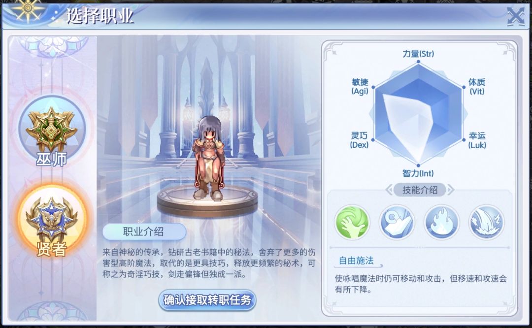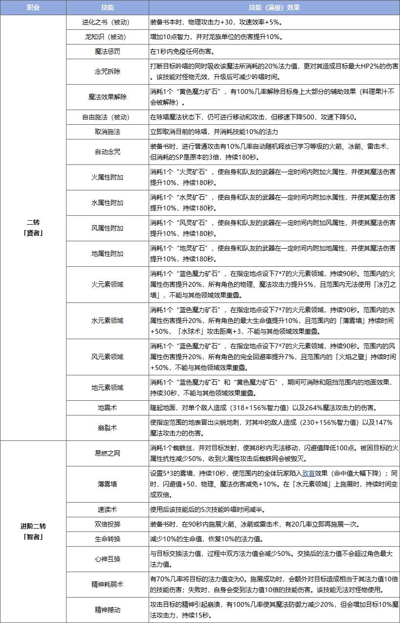 新增内容01 魔法师进阶职业「贤者」魔法师系列二转新增「贤者」职业,可进阶二转为「智者」。
