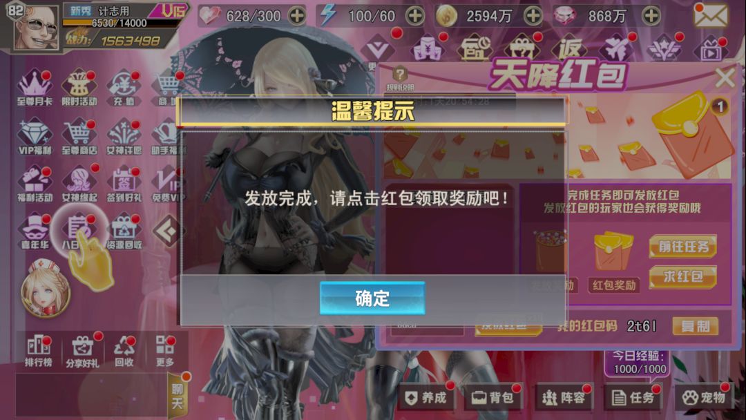 注:每日只能接收1次红包,翌日00:00刷新接收次数,发放红包没有次数限制,即每天可以给多个不同的玩家发放红包。红包在活动结束后失效,请尽快使用您的红包。