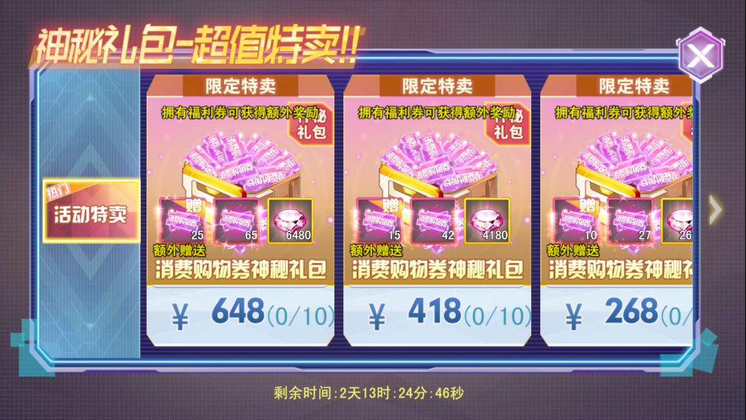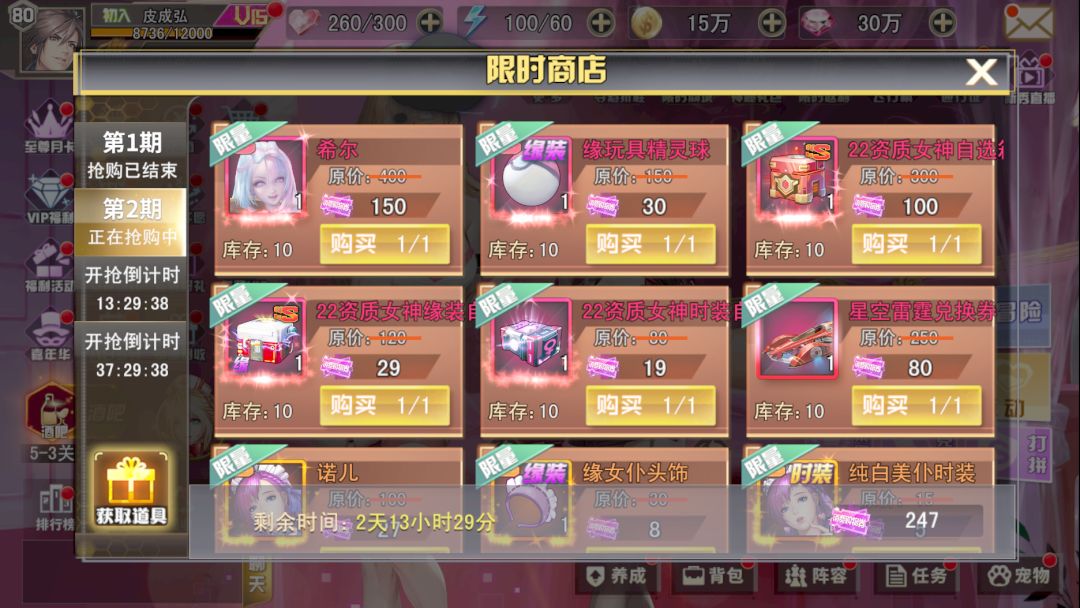 ps:我们的限时商城一共四期,每期道具不同,每日轮换,请各位玩家注意每期商店的开启及结束时间!