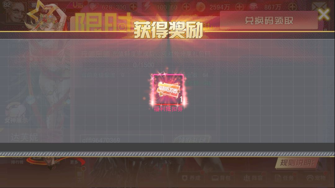5、领取<礼包码>的用户将获得<福利抵扣券>,购买消费购物券礼包时将会获得额外的消费购物券;