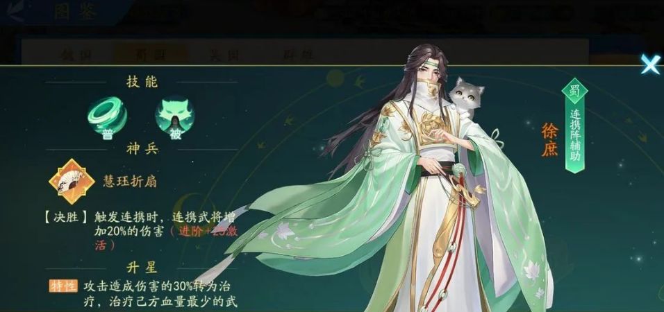 ·养成成本:2星(只需要配个徐庶锦囊,连携概率就可以达到52.5%,神兵+25还可提升20%连携伤害,诸葛亮3星也才提升12%技能伤害)