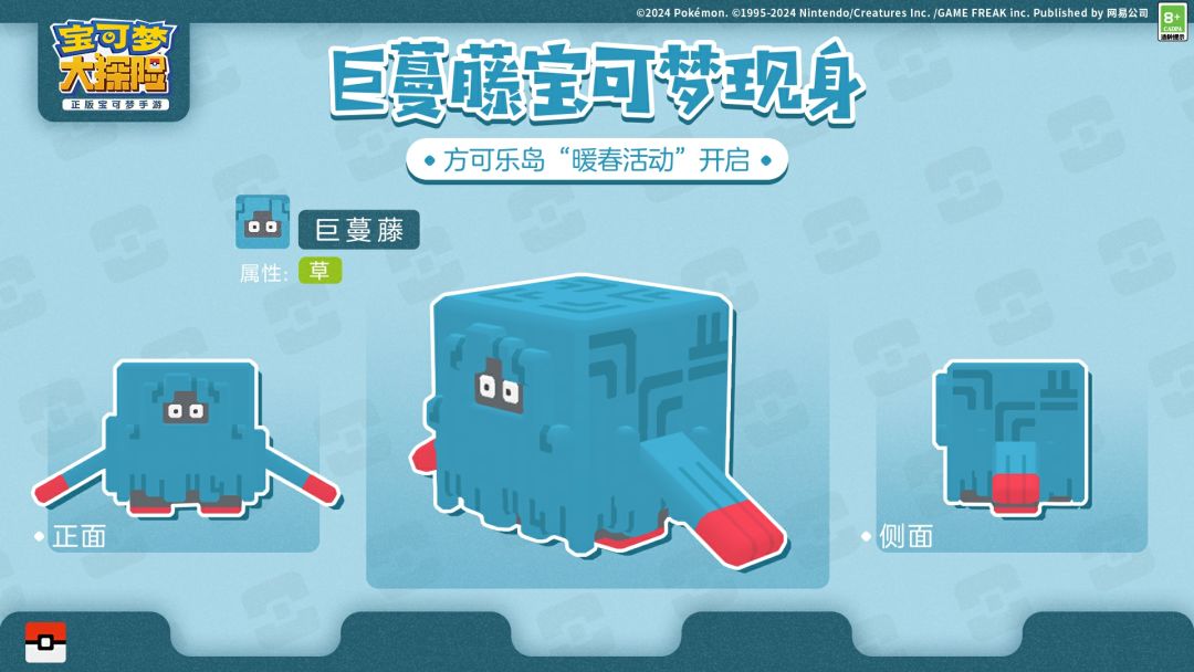 2024年3月21日-4月11日期间。活动特别料理“方可乐金丸果饮”开放制作。喇叭芽、走路草、阿柏蛇、毛球、地鼠、妙蛙种子、蛋蛋、蔓藤怪、莲叶童子、派拉斯、南瓜精、种子铁球、木棉球、草苗龟、巨蔓藤、刺球仙人掌统统都会被它吸引。同时,探险家们也可以通过活动获得食材“金丸果”。