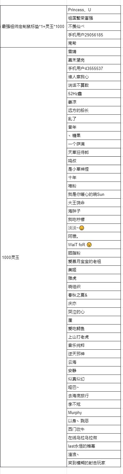 抽出5名玩家送出星期四豪华套餐:最强祖师定制鼠标垫*1+灵玉*1000