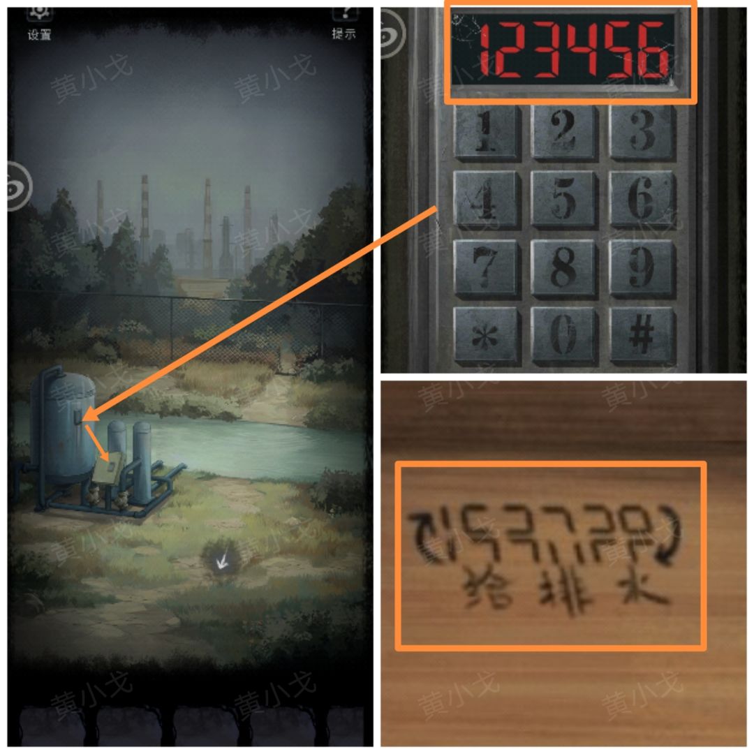 2.(河边)点击排水设备的控制面板,根据讲台桌面上的涂鸦,输入密码:123456(箭头符号表示上半部分和下半部分互换位置)