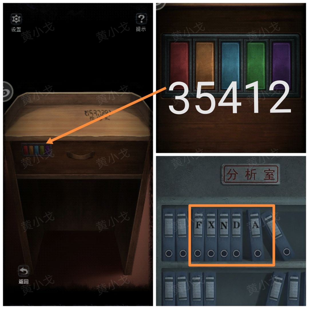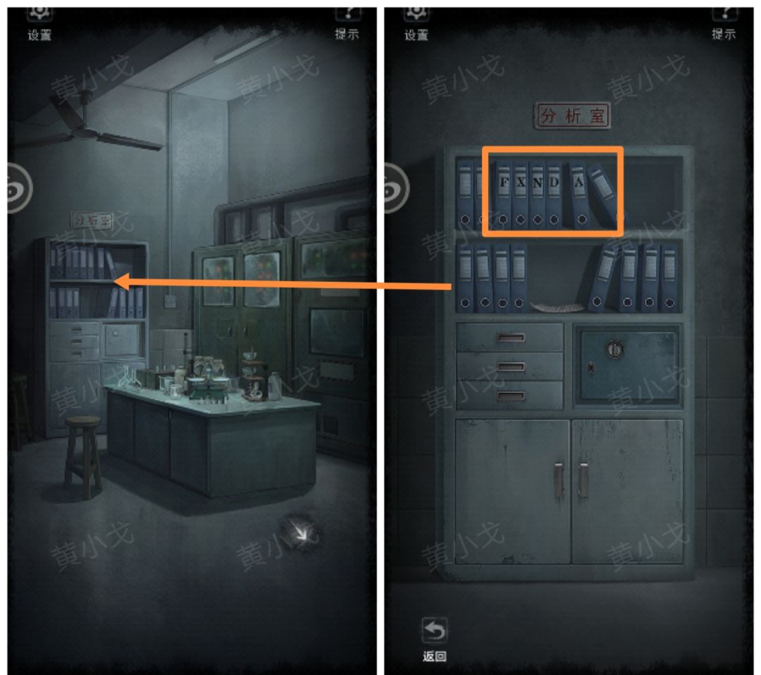 11.(分析室)点击柜子,注意看文件夹上的标签(FXNDA)
