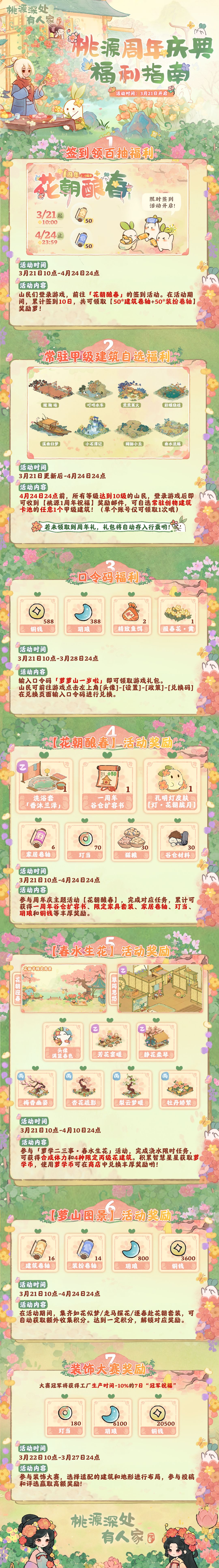 桃源壹周年庆典现已开启啦~为方便各位山民了解庆典福利活动内容,小萝卜整理了一份