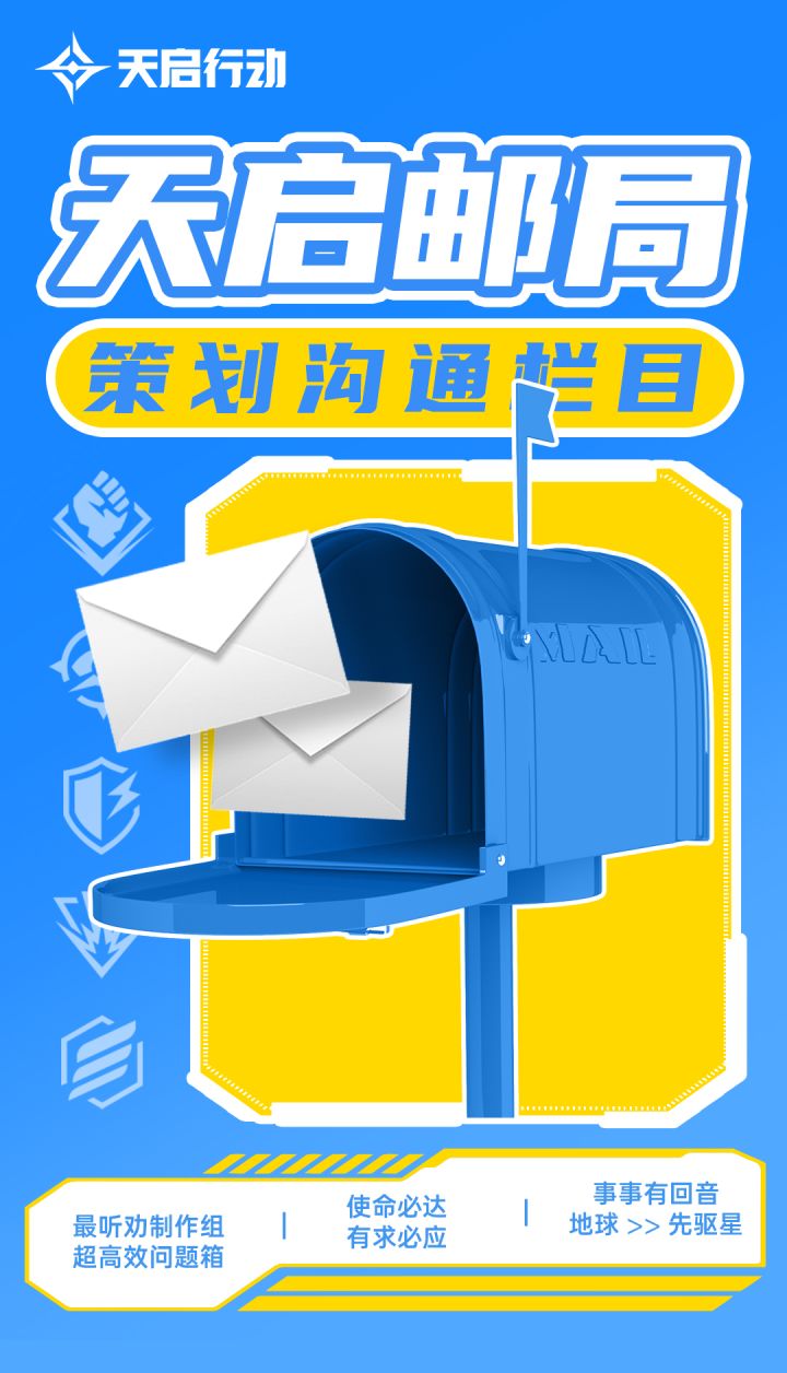为了让反馈直达我们最听劝的《天启行动》制作组,并尽快得到策划答复,大玲特此开设了【天启邮局】栏目,使命必达,有求必应