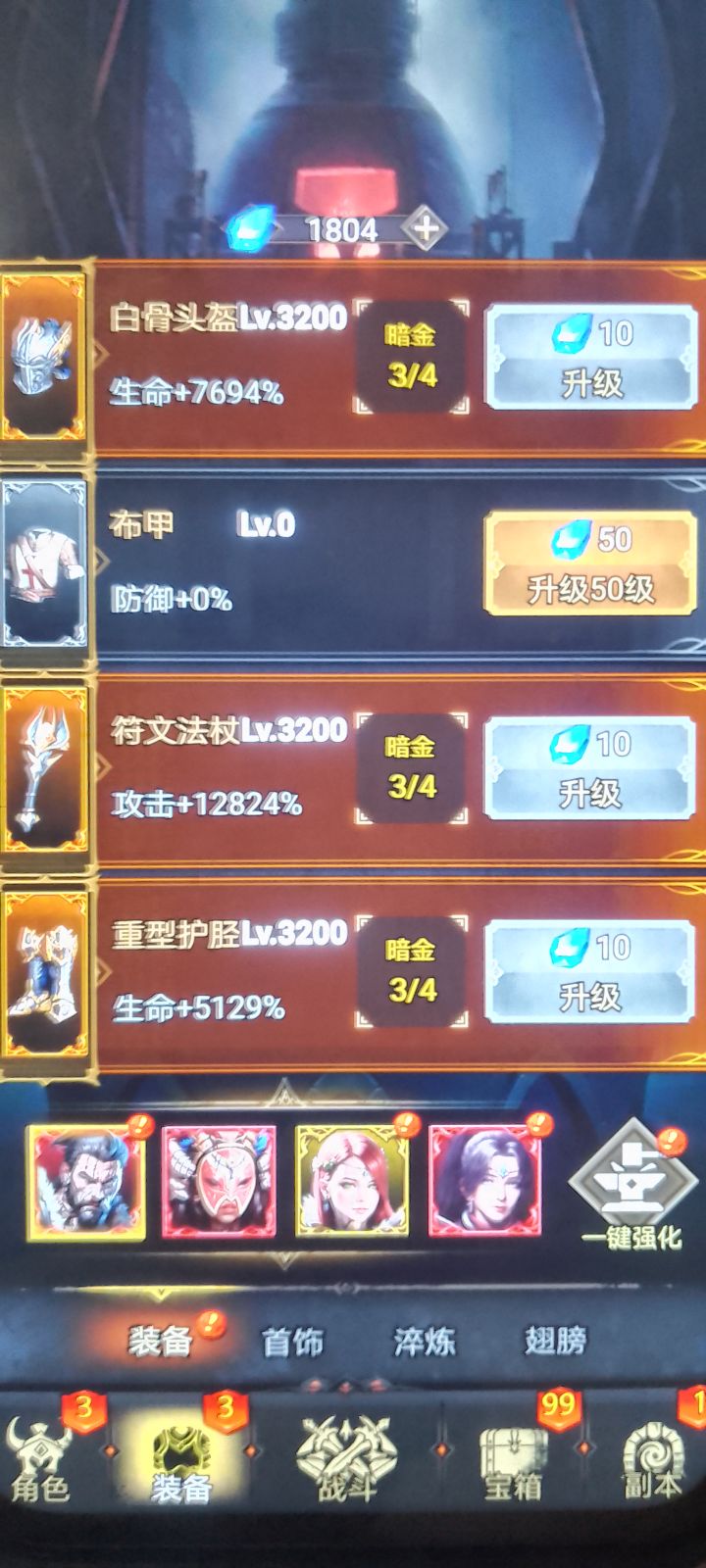 主力丹,所有资源都给他。推图选择这4个英雄,丹不要升级衣服,进图就能触发双倍攻击!等下发个视频