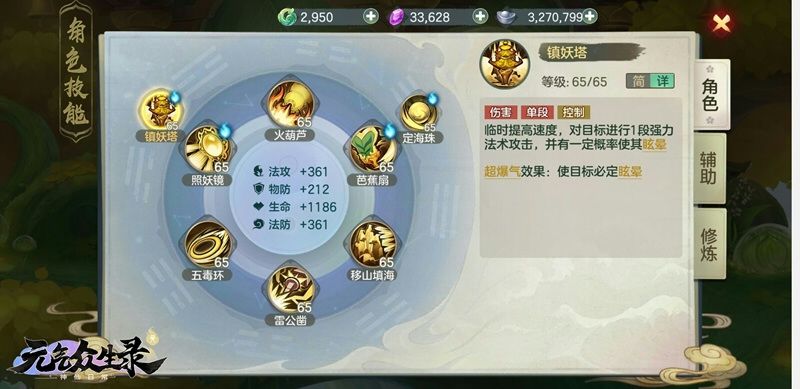 技能点评:从技能被动可以看出,玉虚宫是分别拥有两个技能被动提供了法防和生命的,且火葫芦技能大大增加了玉虚宫的法攻,所以推荐玉虚宫优先点满这几个技能。
