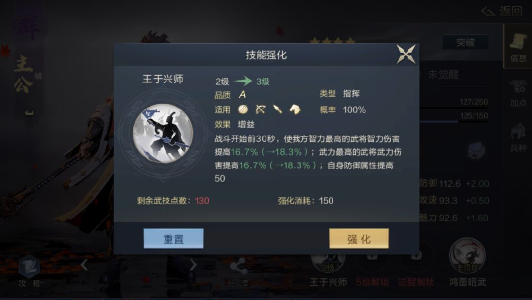 主公的作用是“王于兴师”提供高额的BUFF加成,所以加点加防御当前排就行。前期尽量别频繁更换武将,把一个队伍等级打上去,才能更有效率的拓地开荒。