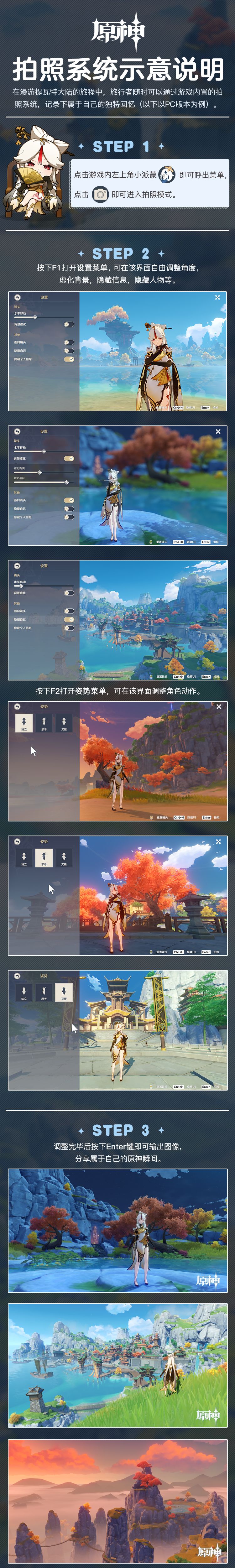 在漫游提瓦特大陆的旅程中,旅行者随时可以通过《原神》内置的拍照系统,记录下属于自己的独特回忆~