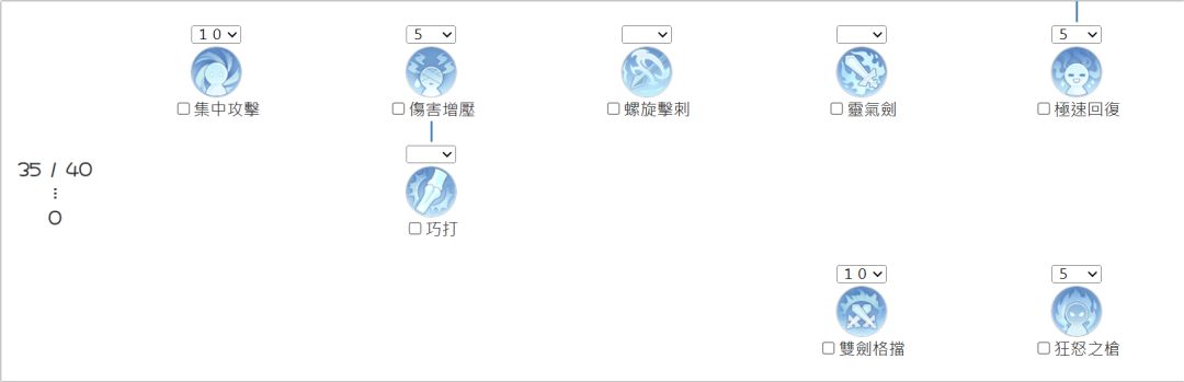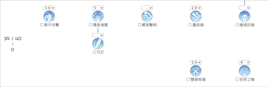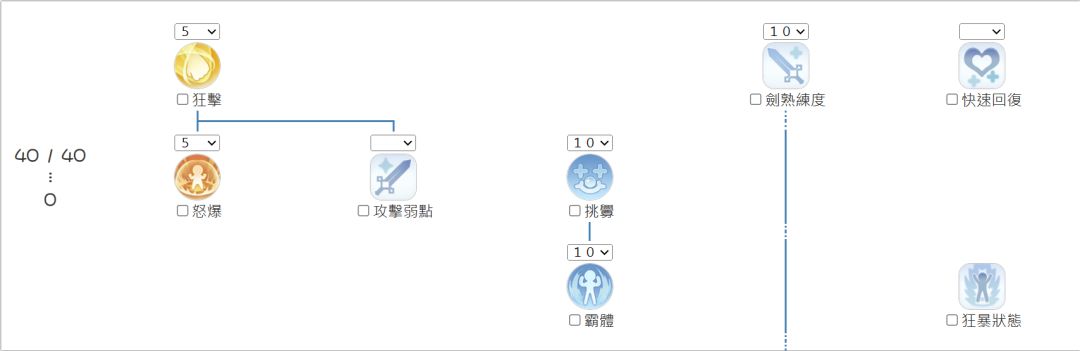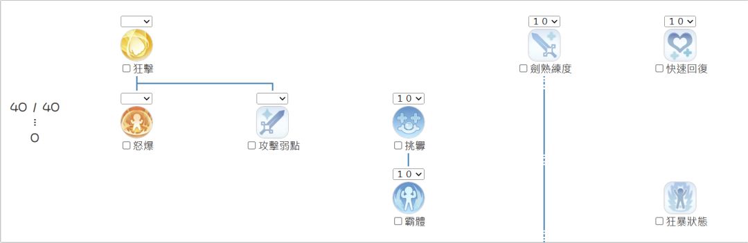 解析:钢铁意志配合坚定打击才会有高额的减伤,剑攻速增加是为了要让坚定打击可以比较快的释放,等到进阶二转部分优先点满双剑格挡,接着就是狂怒之枪,狂怒之枪在打Mvp时候可以赚取到非常高额的承伤,总之打Mvp时一有狂怒之枪就开。