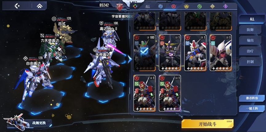 阵容机体:自由高达、天帝高达、百式、力天使高达、高达Mk-Ⅱ