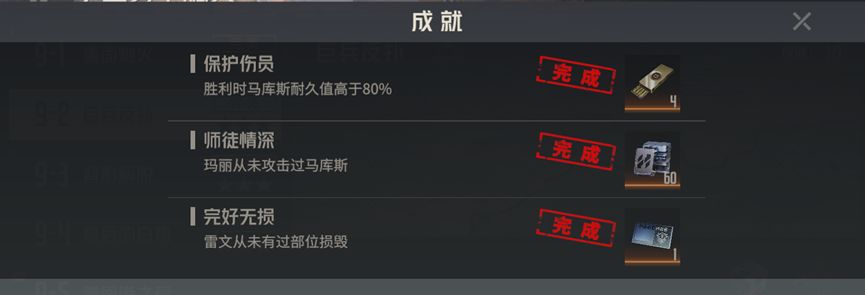 完好无损:这个成就相对前面两个要难一点,雷文周围三个敌人伤害非常高,需要在第一回合就尽可能消灭雷文周围的敌人,梅利莎的远程治疗也能保持雷文血量健康避免部位破损