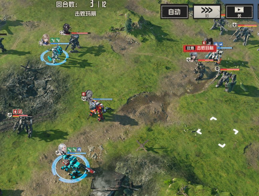 本关目标是消灭玛丽,但如果不管其他敌人,绕过他们直接攻击玛丽,那么雷文和马库斯的处境就会比较危险,也不利于成就的完成,还是需要按部就班,先清理周围敌人,再攻击玛丽,稳步推进。本关头目敌人以及玛丽都能施加核心受损buff,最好是能够由我方先手攻击,一旦被施加buff,想要将他们消灭就比较困难。最后,需要注意的是,玛丽不免疫宕机,将其宕机,会比较容易消灭她