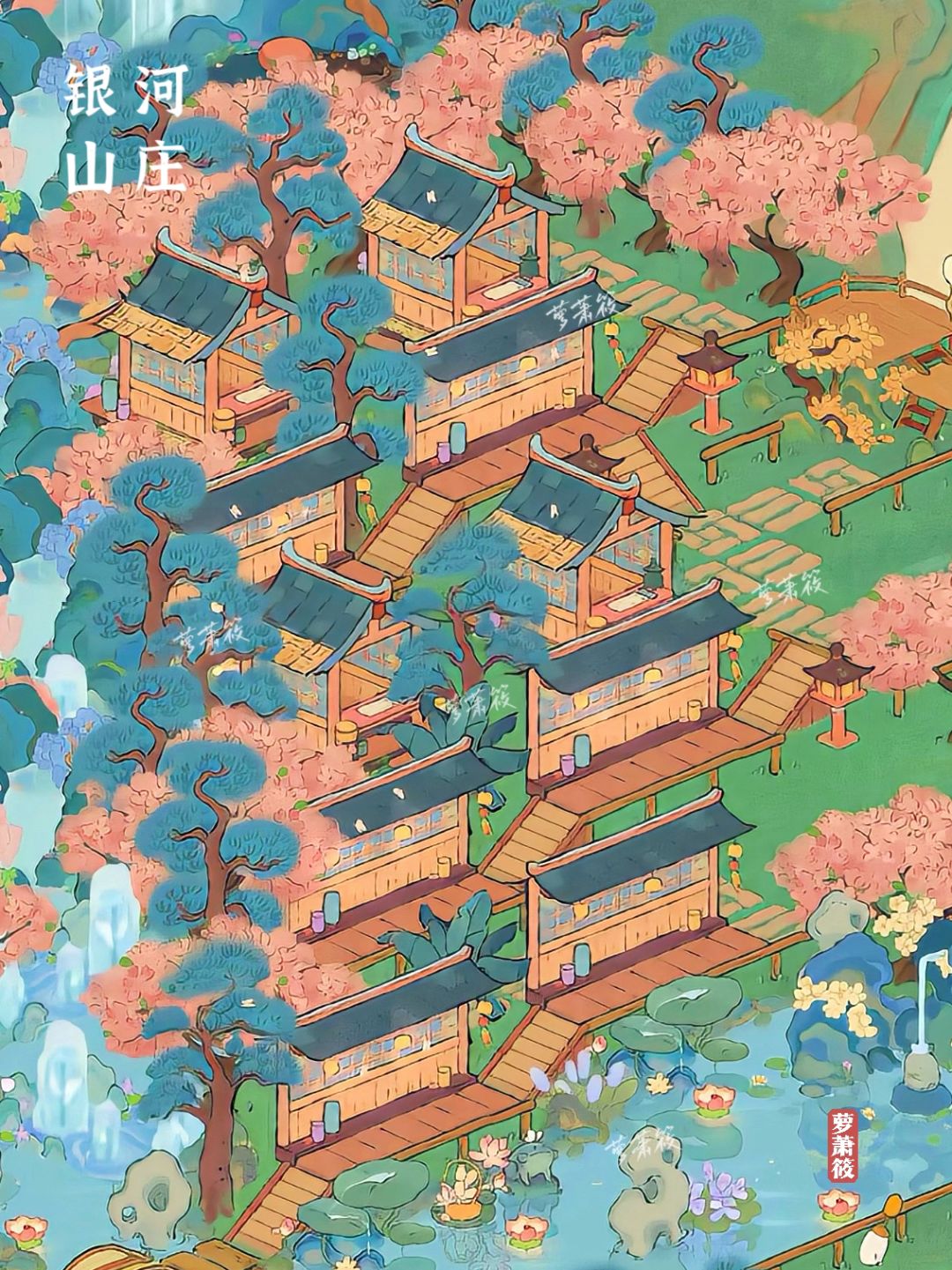 🌸「银河山庄」放大版本,粉蓝色调意外的适合春天。