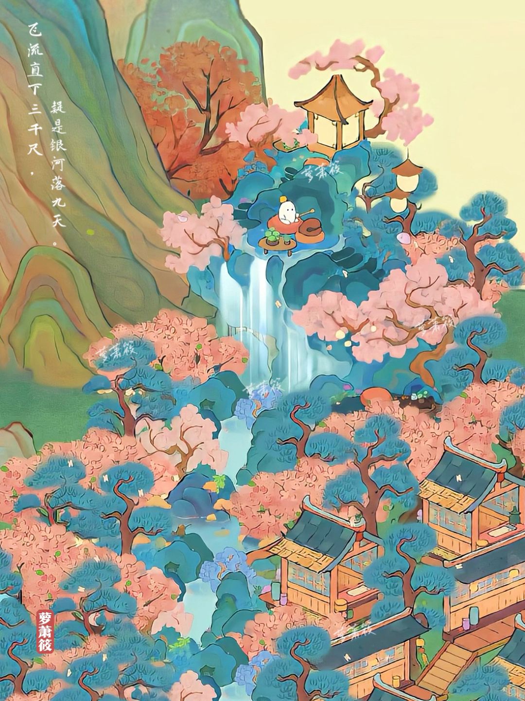 飞流直下三千尺,疑是银河落九天。
