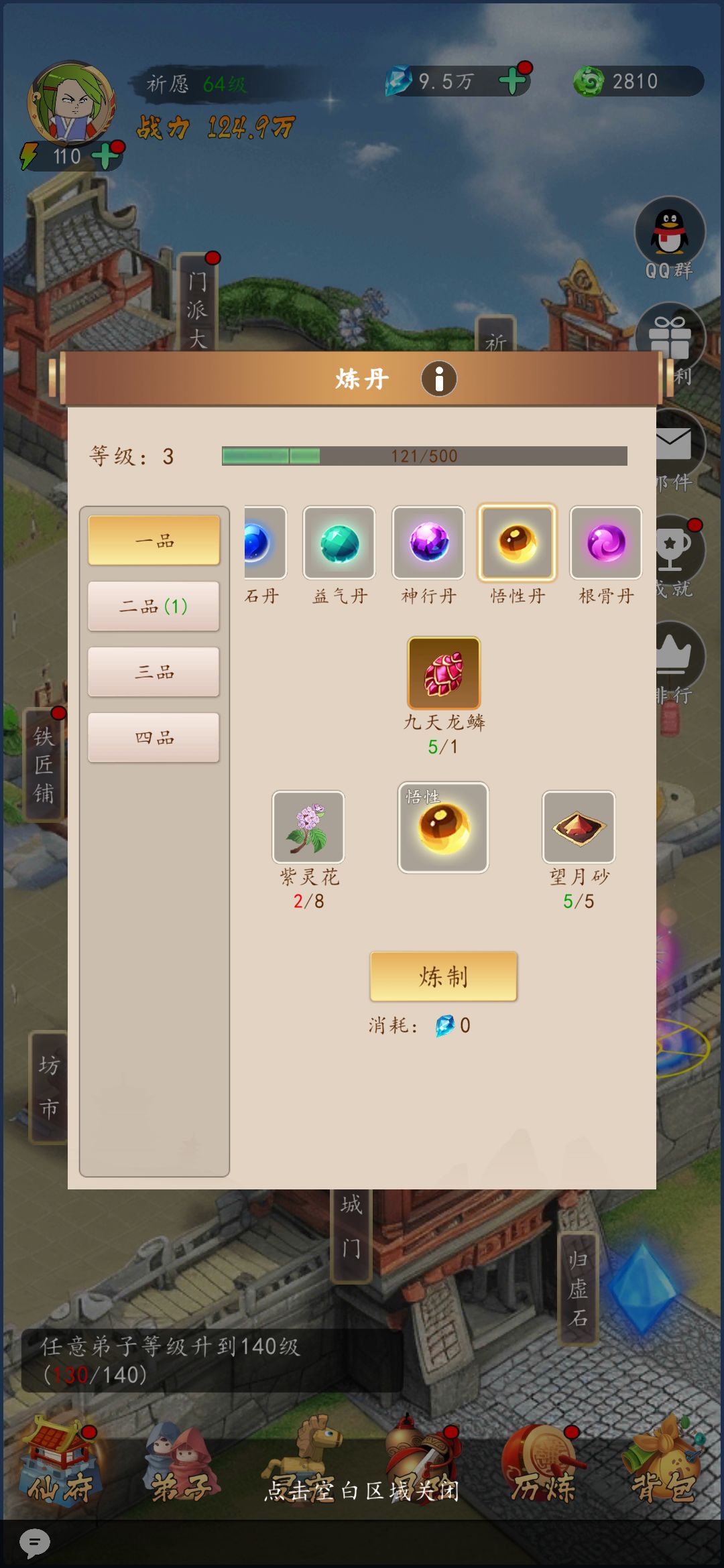 由于目前游戏关卡与副本战力跨度很大,所以雨露均沾的提升等级方法不适合,更偏向于优先培养单核/双核,其他位置带控制武学为核心c提供输出条件来过关。提升等级需要修为,修为由各阶段修行丹提供,初期最快获得丹药的地方是主线和坊市,当主线卡住完成不了时,可以去坊市刷新购买丹药,不要舍不得玉和灵石,不用就不会有提升。注意,坊市刷新的修行丹等阶与自身突破境界最高的弟子有关,筑基境界会刷新一阶修行丹与突破结丹境界丹药,结丹境界会刷新二阶修行丹与突破元婴境界丹药,元婴境界会刷新三阶修行丹与突破化神境界丹药,化神到后面境界会刷新四阶修行丹与突破大乘境界丹药,所以要先培养一个高境界的弟子,再去刷新坊市获取丹药。