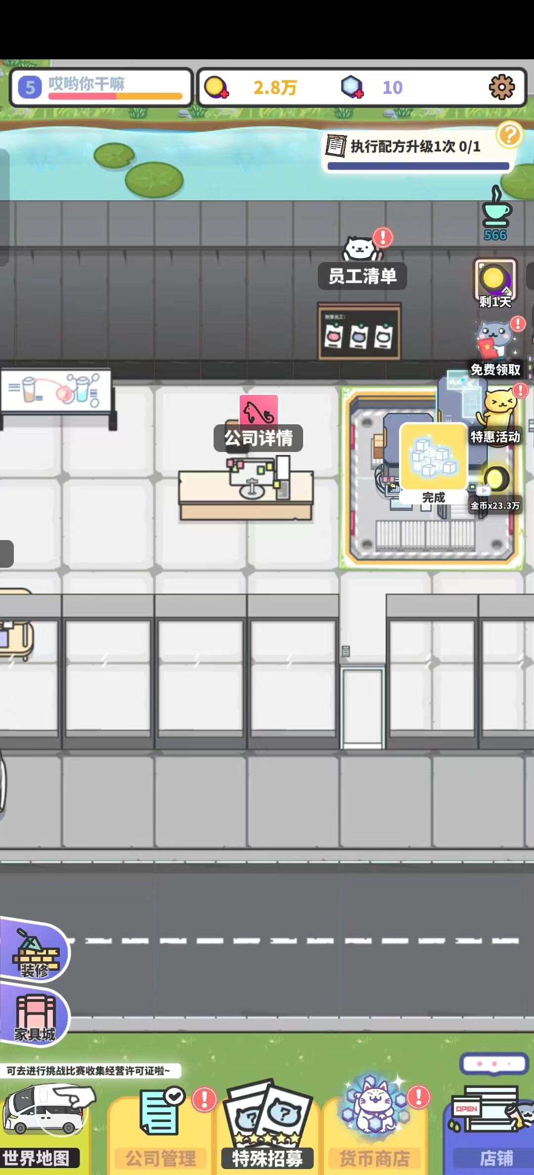 2) 一些经营许可证:世界地图点击左上角的「经营挑战赛」,挑战成功之后就可以获得包括经营许可证的大量经验~