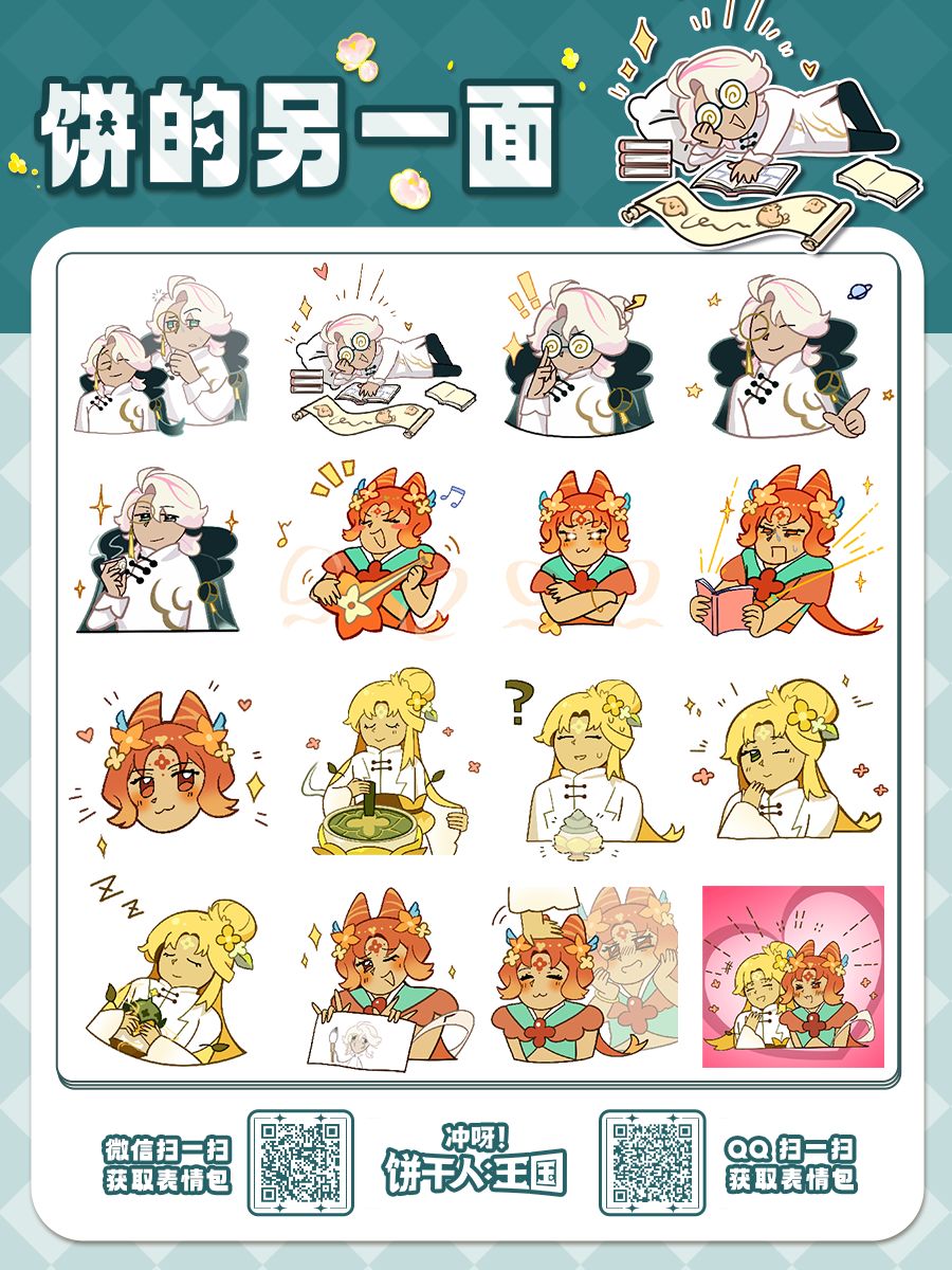 QQ平台:进入我的表情→点击左下角+号→进入QQ表情商城,搜索「饼的另一面」,即可获取系列表情包。
