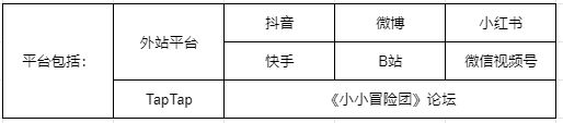 2.在以下平台发布与本游戏相关的原创视频,视频标题需带有:“TapTap下载《小小冒险团》”